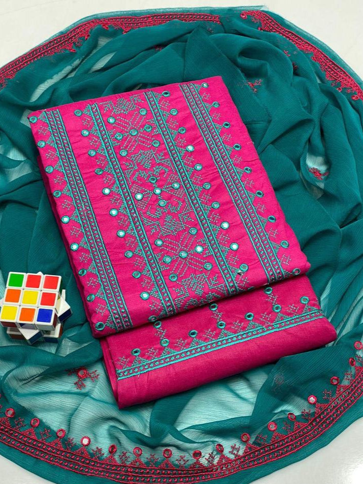 3 Pcs Women's Unstitched Cotton Embroidered Suit